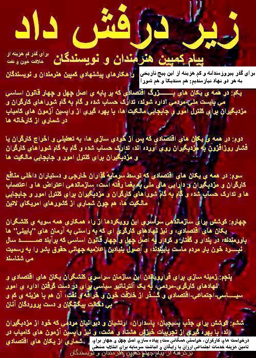 از بيانيه هنرمندان و نويسندگان: زير درفش داد گرد هم آييم