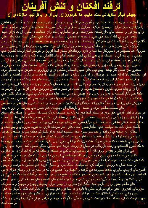 يخي براي درنگاهي به چند نشان گذاري تاريابيدن «بـــرخـــي» از ريشه هاي شورش هاي اجتماعي http://www.b-arman.com/html/yaddasht_c_1188_panj_neshan.html ستيز بر سر کنترل راه هاي بازرگاني باختر آسيا http://b-arman.com/html/yaddasht_c_1195_b-asia.html