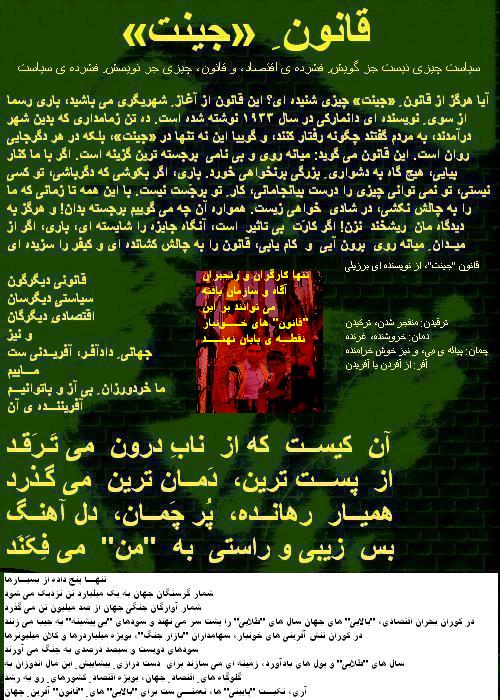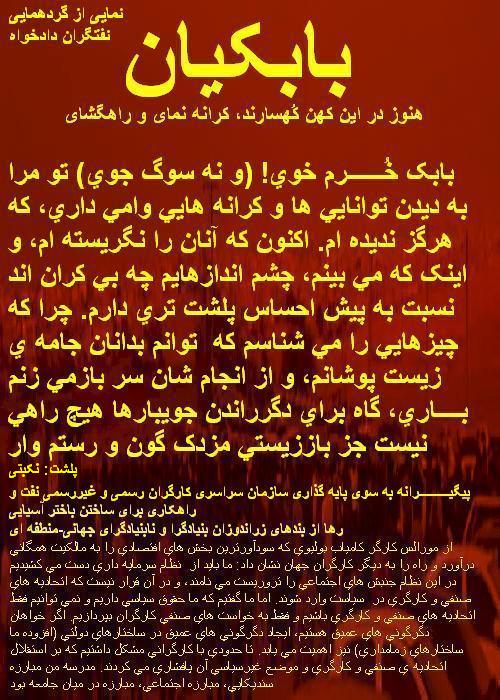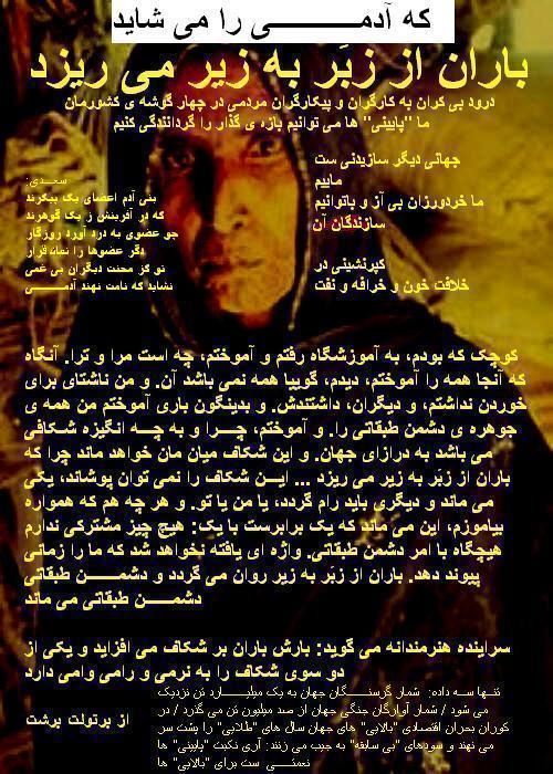 از بيانيه هنرمندان و نويسندگان: در زير درفش داد گرد هم آييم http://farakhan-iran.com/html/g_1596_az_payam_40.html