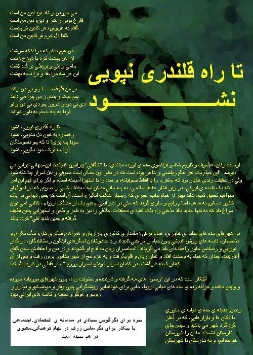 پيکار فرهنگي با خردستيزان و بيدادگران http://www.b-arman.com/html/darbargarye_katuzy.html