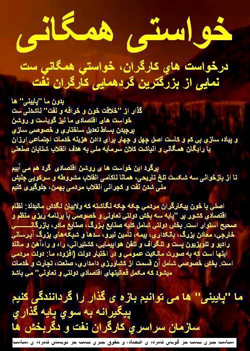 مي توان از بازخواني سه شکست تلخ تاريخي، ناکامي انقلاب مشروطه و سرکوبي جنبش ملي شدن نفت و کجراني انقلاب مردمي بهمن، جلوگرقت، اگر که کارگران و رنجبران و دادخواهان هشيارانه تر پيش تازند ....................................... از مورالس، کارگر کامياب بوليوي که سودآورترين بخش هاي افتصادي را به مالکيت همگاني درآورد و راه را به ديگر کارگران جهان نشان داد: به وجود آوردن رهبران جديد نياز به هدايت و رهبري زيادي دارد. (من) اين کارها را مي کردم، در اختيار گذاشتن تجربه ي مبارزه ي سنديکايي ام، و نيز تجربه ام در مبارزه ي انتخاباتي و اداره ي دولت. سياست (مردمي) علمِ خدمت، تلاش، تعهد، و فداکاري براي اکثريت و بينوايان است. بديهي است که سياست، مبارزه اي ميان منافع گوناگون و متفاوت است. و چيزي که ما را از ديگران متمايز مي کند اين است که ما براي منافع مشترک، منافع جمعي، به نفع تهي دستان مبارزه مي کنيم. مبارزه ي ما براي تمرکز سرمايه در دست تعدادي اندک نيست، بلکه بازتوزيع ثروت است به طوري که حدّي از برابري، عدالت اجتماعي، و صلح همراه با برابري و عزت و عدالت اجتماعي تأمين و تضمين شود. ما بايد از نظام سرمايه داري دست مي کشيديم. در اين نظام جنبش هاي اجتماعي را تروريست مي نامند، و در آن قرار نيست که اتحاديه هاي صنفي و کارگري در سياست وارد شوند. اما ما گفتيم که ما حقوق سياسي داريم و نمي توانيم فقط اتحاديه هاي صنفي و کارگري باشيم و فقط به خواست هاي صنفي کارگران بپردازيم. اگر خواهان دگرگوني هاي عميق هستيم، ايجاد دگرگوني هاي عميق در ساختارهاي دولتي (افزوده ما: ساختارهاي زمامداري) نيز اهميت مي يابد. تا حدودي با کارگراني مشکل داشتيم که بر استقلال اتحاديه صنفي و کارگري و موضع غيرسياسي آن پافشاري مي کردند. مدرسه من مبارزه سنديکايي، مبارزه اجتماعي، مبارزه در ميان جامعه بود ....................................... آزمون هایِ پارینی و کنونیِ جنبش هایِ کارگری-مردمی در چارگوشِ جهان، از آن میان در امریکایِ لاتین نیز، و از آن دست در بولیوی نیز، نمایانگر آنند که نه تنها در کورانِ پیروزیِ بازه ای بر بورژوازی، بلکه پیش و پس از آن نیز می بایست بر گردآوریِ نیروهایِ راستینِ پشتیبانِ "پایینی" ها پای فشرد، بویژه با دراندازیِ خواست هایِ بسیارِ روشنِ بازه ایِ اقتصادی در راستایِ خلعِ مالکیتِ دَرنده ترین و خطرناکترین و پُرترفندترین دشمنانِ "زمین و کارگران" از سویی، و برنامه ریزیِ حساب شده برای چیرگی بر برجسته ترین گلوگاه هایِ اقتصادی-اجتماعی-فرهنگی-امنیتی از دگرسویی ....................................... چگونگیِ همکاری با سازمان ها و نهادها و سخنگوهایِ خرده بورژوازی و بورژوازیِ کوچک-میانه ی ناکمپرادور در جنبش هایِ ملی-دمکراتیک و انقلاب هایِ برخاسته از آن، چه آیینی و چه ناآیینی، وابسته بوده و هست به برخوردِ آنان به خواست هایِ اقتصادی-اجتماعیِ لایه هایِ "پایینی"، بویژه به درخواست هایِ کارگران. جنبشِ کارگریِ ایران درخواست ها و خط قرمزهایِ مرحله ایِ خود را در بیانیه هایِ گوناگون، بیشاکم روشن، دست رسانده است. ما در کتابِ "خیزشِ هشتاد و هشت"، فشردگون آماج ها و خواست هایِ در راستایِ واگَردانیِ بنیادیِ زیر را، که نیز می توانند زمینه ای گردند برایِ گردآوریِ نیروهایِ ملی-دمکراتِ راستین، برجهانده ایم: "بازپس گرفتن دارایی های ملی زیردستِ خودی ها با پایوَری و اتکا بر قانون اساسی، باشاندن و ایجاد کردن شرایط برابر مالی برای همه ی آیین ها و تامین مالی آنان تنها از راه باورمندانشان، آمادن فهرستی از دارایی های ملی تاراج شده از سوی دست اندرکاران رژیم و دستیاران درون و برون مرز آنان برای بردن به دادگاه های درمرزی و فرامرزی (همانند رَقبات نادری که کاربُردیِ سیصد ساله داشت و جایگاه اقتصادی-اجتماعی دین سالاران را درازگاه فروکاست)، از میان برداشتن دولت در دولت هایی مانند شورای نگهبان و مجمع تشخیص مصلحت و جلوگرفتن از دستداشت و ناخنکِ ارگان های همگون شان در فرایندهای اقتصادی، کاهش توان بازار و دست اندر
